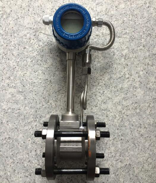 2、溫度補償一體型渦街流量計還帶有溫度傳感器,可以直接測量出飽和蒸汽的溫度并計算出壓力,從而顯示飽和蒸汽的質(zhì)量流量。