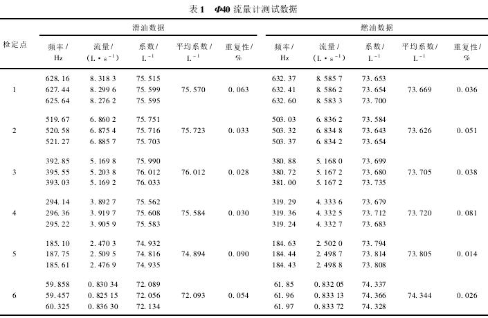 Φ40流量計(jì)測(cè)試數(shù)據(jù)如表1所示。