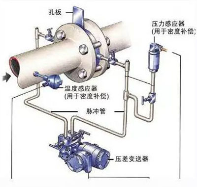 氣體流量計(jì),就是在管道內(nèi)部加裝一個(gè)中間開孔的圓板,然后測(cè)量蒸汽在孔板前后的壓力差,經(jīng)過計(jì)算換算出蒸汽的流量。