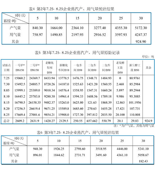 (1)綜上數(shù)據(jù),圖表可看出煙氣流量計測量飽和蒸汽,流量數(shù)據(jù)顯示清晰,穩(wěn)定可靠,其產(chǎn)、用氣量隨著流量計的完善,其差值變小了,也即使用部門越多,其消耗越少。