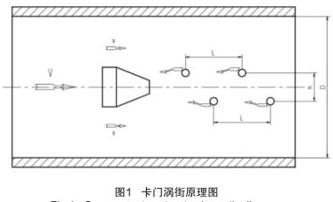 按國際標(biāo)準(zhǔn)化組織 IS07145(在環(huán)形截面封閉管道中的流體流量測定--在截面一點(diǎn)的速度測量法),采用埋入壓電晶體的渦街測速探頭,插入大口徑工業(yè)管道內(nèi),將卡門旋渦頻率轉(zhuǎn)換為與流量成正比的標(biāo)準(zhǔn)信號(hào):(4 ~ 20)mA DC。