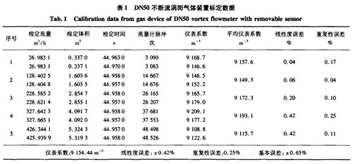 由表1和表2的實際標定數(shù)據(jù)可知,在量程比大于1:10的情況下,用不斷流氫氣流量計測量氣體或液體介質(zhì)時,基本誤差及重復性均能達到中華人民共和國機械行業(yè)標準JB/T9249一1999《渦街流量傳感器》[’1中所規(guī)定的精度要求。