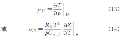 式中:T--絕對(熱力學)溫度;p--流經(jīng)管道的流體靜壓;H--焓;RO--通用氣體常數(shù);Cm,p--定壓摩爾比熱容;Z--壓縮系數(shù)。