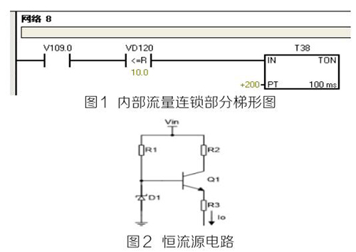 (2)PLC及模塊。PLC及模塊是自動(dòng)化控制系統(tǒng)主要設(shè)備,且PLC及模塊屬于高集成高精密電子設(shè)備,保持室內(nèi)整潔舒適,可以提高自動(dòng)化系統(tǒng)運(yùn)行穩(wěn)定性。PLC及模塊硬件運(yùn)行可靠,內(nèi)部控制程序是其控制核心軟件,如PLC硬件出現(xiàn)故障或損壞一般直接更換,但原內(nèi)部控制軟件無(wú)法上傳,整個(gè)控制系統(tǒng)成失控狀態(tài)。所以其內(nèi)部控制程序在調(diào)試驗(yàn)收合格后應(yīng)及時(shí)備份并做好標(biāo)記,為以后修復(fù)PLC故障提供保障。PLC系統(tǒng)的維護(hù)技術(shù)人員需掌握一定基礎(chǔ)PLC控制邏輯原理,對(duì)準(zhǔn)確判斷PLC故障點(diǎn)有很大的幫助。例如選礦廠水泵房S7-200系列PLC自動(dòng)抽水系統(tǒng)出現(xiàn)如下故障 :觸摸屏能控制變頻器啟動(dòng)水泵抽水,但在短時(shí)間內(nèi)會(huì)自動(dòng)停泵,導(dǎo)致無(wú)法正常抽水。通過(guò)故障現(xiàn)象可初步判斷PLC及模塊硬件設(shè)備正常,主要由于某個(gè)變量有問(wèn)題導(dǎo)致連鎖停機(jī)。打開(kāi)備份PLC控制梯形圖程序進(jìn)行相關(guān)分析,原來(lái)是高溫液體流量計(jì)瞬時(shí)流量數(shù)值做了連鎖,其在一定時(shí)間內(nèi)瞬時(shí)流量不大于10m 3 /h時(shí),自動(dòng)停泵,電磁流量模擬量輸出電流值僅為4ma且無(wú)變化,確定高溫液體流量計(jì)有故障。可臨時(shí)應(yīng)急維修,模擬量模塊輸入模擬電流值10ma~20ma之間一固定數(shù)值即可恢復(fù)正常運(yùn)行。制作簡(jiǎn)單恒流源電路代替高溫液體流量計(jì)輸出的模擬電流量,實(shí)現(xiàn)解決水泵無(wú)法正常運(yùn)行的故障。