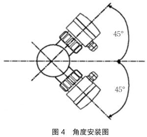 垂直安裝時(shí)確保流向由下而上,如圖 4 中箭頭所示,應(yīng)與管道水平中心線成 45 度角安裝智能型電磁流量計(jì)。