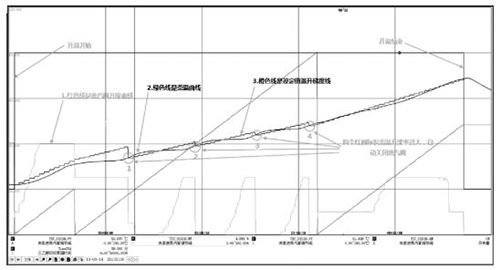 全過程升溫曲線見圖 2,從圖 2 可以看出,通過上述工藝參數(shù)的設(shè)定,從升溫開始到升溫結(jié)束,管道流量計(jì)溫基本上是按照溫升梯度進(jìn)行升溫,當(dāng)出現(xiàn)溫升速率太快時(shí),蒸汽閥自動(dòng)關(guān)閉,無需人工參與,可以自動(dòng)控制管道流量計(jì)料液溫度的平緩上升,實(shí)現(xiàn)脫溶單元操作自控運(yùn)行。