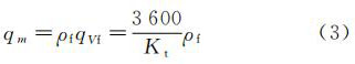 式中:qVf--旋渦發(fā)生體出口的工況體積流量,m3/h;f--旋渦頻率,P/s;Kt--工作狀態(tài)下流量系數(shù),1/m3。