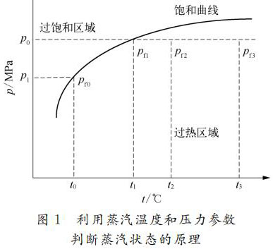 利用蒸汽的溫度壓力參數(shù)自動判斷蒸汽處于過熱狀態(tài)還是飽和狀態(tài),原理如圖1所示。關(guān)鍵是判斷蒸汽的溫度壓力值是落在臨界飽和曲線的下方還是上方,如果落在下方,則為過熱狀態(tài);如果落在上方,則為飽和狀態(tài)。
