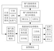 根據(jù)功能設(shè)計(jì)的循環(huán)流化床火炬氣流量計(jì)煙氣脫硫排放效果監(jiān)測系統(tǒng)包括煙氣脫硫排放效果采樣模塊、煙氣脫硫排放效果分析模塊、煙氣脫硫排放效果流量檢測模塊以及數(shù)據(jù)接收處理模塊、報(bào)警模塊、后備輔助設(shè)備模塊等六大模塊,具體結(jié)構(gòu)如圖1 所示。