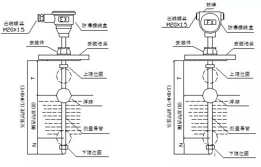 頂裝式浮球液位計是一種工業(yè)生產(chǎn)中普遍在使用的液位測量儀表,其安裝方便靈活,具有良好的適應(yīng)性,法蘭式和支架式安裝都可進行,可適應(yīng)不同的工況條件。浮球液位計是以磁浮球為測量元件,通過磁耦合作用,致使傳感器內(nèi)電阻產(chǎn)生線性變化,再通過智能轉(zhuǎn)換器將電阻變化轉(zhuǎn)換成4~20mA標(biāo)準(zhǔn)電流信號傳輸,特殊訂制的型號亦可以疊加HART協(xié)議的信號,*終能液晶方式顯示。據(jù)變送器與顯示器的不同型號,可以現(xiàn)場顯示液位的百分比、4~20mA電流及液位值,此遠傳信號可以遠傳供給控制室,以實現(xiàn)液位的自動檢測、控制和記錄。頂裝式浮球液位計適用于石油、化工、電力、輕工及醫(yī)藥等行業(yè)污水處理及各類常壓和承壓容器內(nèi)介質(zhì)液位的測量,是測量各類貯罐、地下貯槽的*為理想的液位計產(chǎn)品。