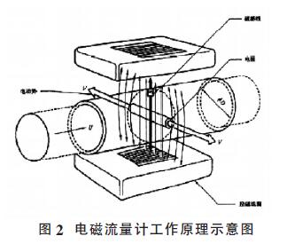 若在磁感應(yīng)強(qiáng)度為B的均與磁場中,垂直于磁場方向放一個內(nèi)徑為D的不導(dǎo)磁管道,當(dāng)導(dǎo)電液體在管道中以流速u流動時,導(dǎo)電流體就切割磁力線。如果在管道截面上垂直于磁場的直徑兩端安裝一對電極則可以證明,兩電極之間也將產(chǎn)生感應(yīng)電動勢E=kBDv (1-2)